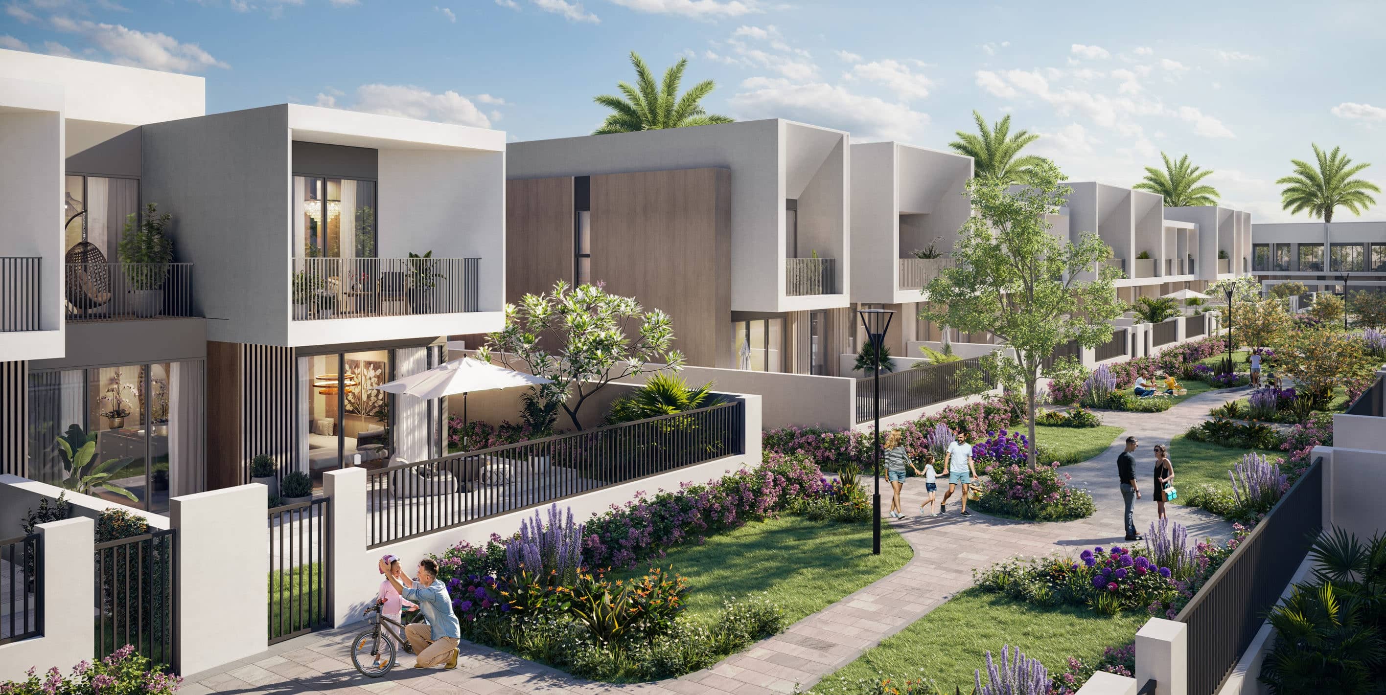 Each 3 bedroom townhouse features a spacious open-plan layout, luxury finishes, private outdoor terraces, and state-of-the-art kitchens. Designed to cater to affluent families and high-net-worth individuals, these residences boast smart home features, floor-to-ceiling windows, and expansive en-suite bedrooms, creating a lifestyle of both elegance and convenience. The ample living spaces are complemented by stunning views of the Emirates Golf Club and the lush green surroundings, offering a peaceful, secure environment within Dubai’s most exclusive gated community.