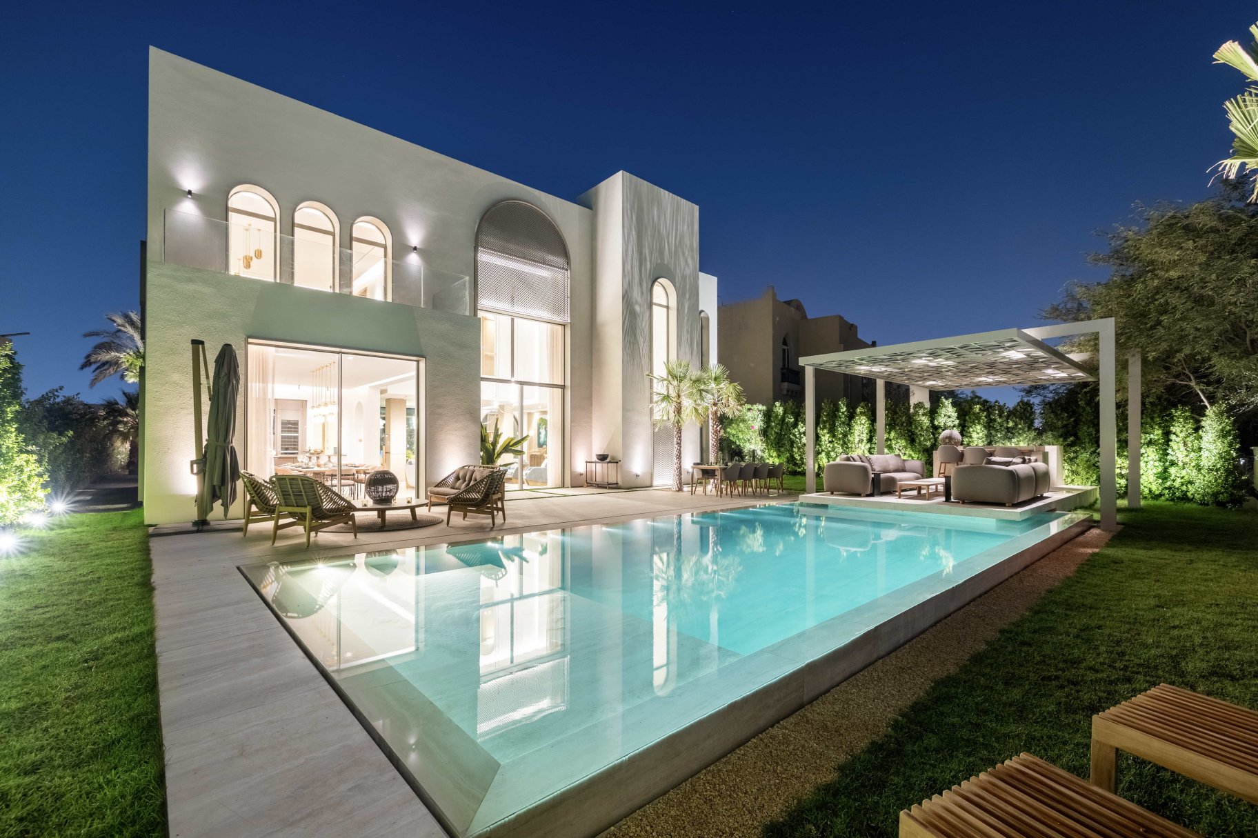Each villa includes generously sized bedrooms, with the master suite offering a luxurious en-suite bathroom, walk-in closets, and private terraces that offer views of the surrounding green spaces or golf course. The additional bedrooms are also spacious, ideal for family members or guests, providing comfort and privacy.